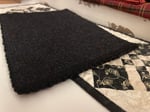 This primitive punch needle mat measures approximately 8 inches wide by 5 3/4 inches tall. It is punched using Valdani pearl cotton threads. I backed this piece with textured wool and stitched black yarn to the edge.