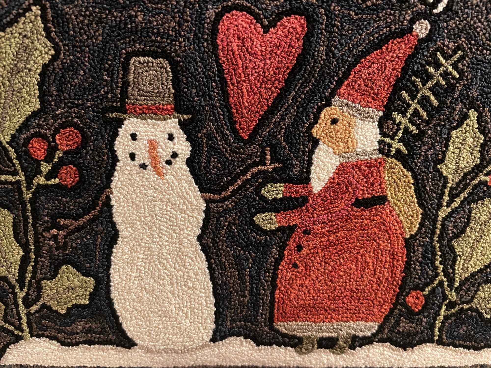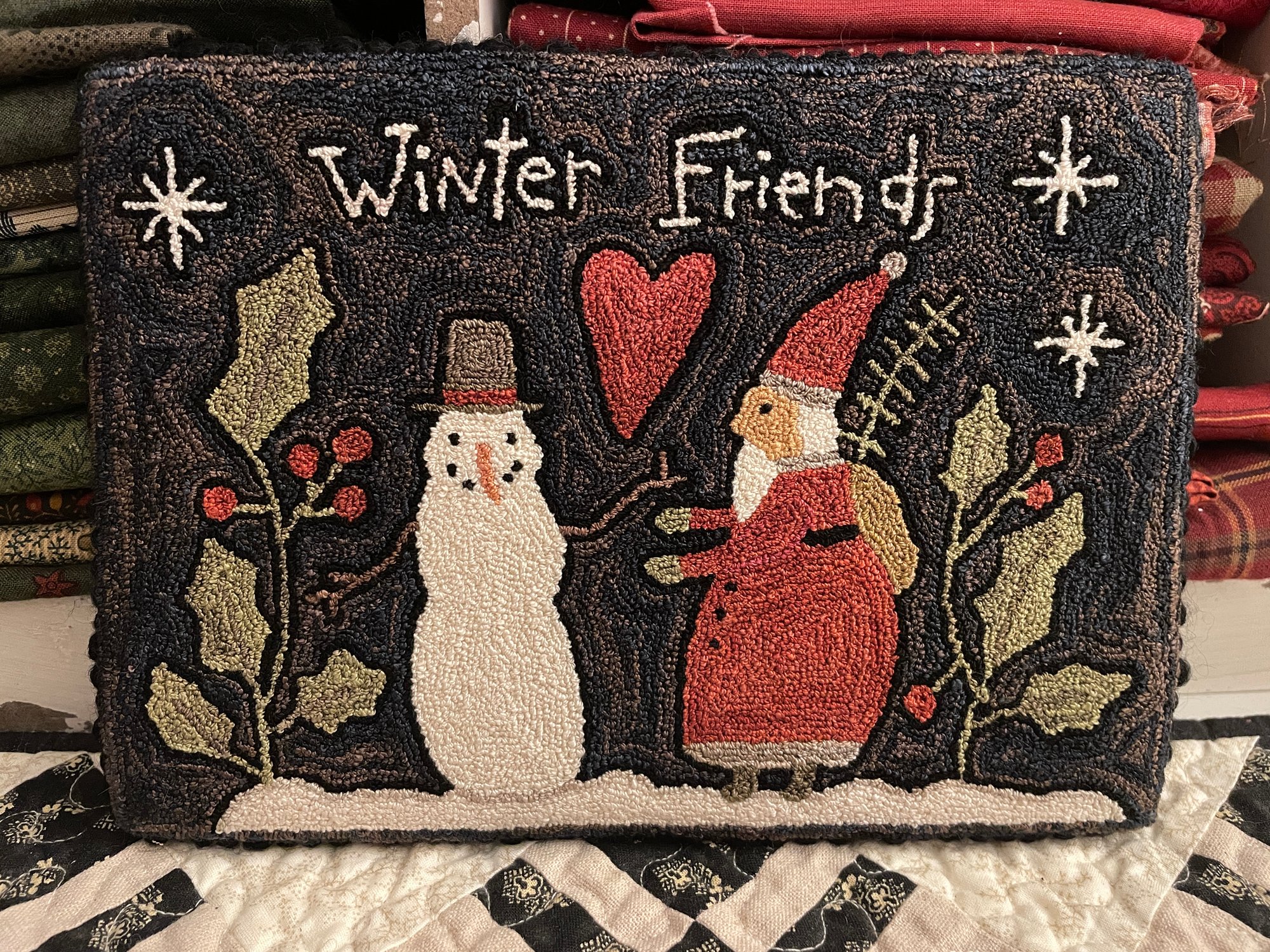 Winter Friends Primitive Punch Needle Decorative Folk Art Mat/Mini Rug~~